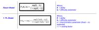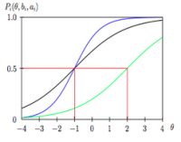 The two parameter logistic model predicts the probability of a successful answer using two parameters (difficulty bi & discrimination ai).