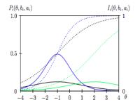 With the 2-PL Model, the assumption of local independence still holds, and the maximum likelihood estimation of the ability, is used. Although, the probabilities for the response patterns are still summed, they are now weighted by the item discrimination factor for each response. Their likelihood functions, therefore, can differ from each other and peak at different levels of θ.