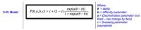 The Model predicts the probability of a correct response, in the same manner as the 1 – PL Model and the 2 PL – Model but it is constrained by a third parameter called the guessing parameter (also known as the pseudo chance parameter), which restricts the probability of endorsing a correct response when the ability of the respondent approaches -∞. As respondents reply to an item by guessing, the amount of information provided by that item decreases and the information item function peaks at a lower level compared to other functions. Additionally, difficulty is no longer demarcated at median probability. Items answered by guessing, indicate that the respondent’s ability is lesser than its difficulty.