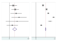 Fixed effect models assume that there is no heterogeneity between studies and will consider within-study sampling error as the only source of variance. As a consequence, fixed effects models will produce an extremely but spuriously precise pooled estimate when assessing the scenario on the right part of the graph. A random effects model instead will appropriately summarize the uncertainty in the pooled estimate derived from the between-variance contribution to total variability, thus resulting in larger standard errors. For two numeric examples of this phenomenon see Petitti, page 92 [2]. Petitti’s example uses OR, but this will apply for RR or other association measures (the paradoxical results illustrated by Petitti are not to be confused with non-collapsibility of OR).