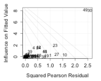 Graph 4. Example of a Baujat plot in meta-analysis or meta-regression