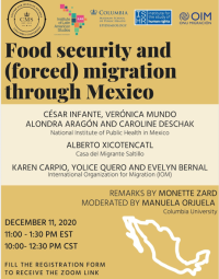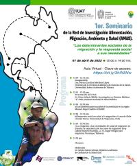 La inseguridad alimentaria, entendida como la falta de disponibilidad, acceso o utilización constante de alimentos adecuados, es un determinante clave de la salud actual y futura de las personas, además de ser un impulsor clave de la migración. En los grupos móviles, la inseguridad alimentaria suele ser una experiencia común pues se presenta en todas las etapas del proceso migratorio poniendo en riesgo su salud y seguridad. En este seminario consideramos el impacto del ambiente incluyendo el clima y el acceso a agua sobre la alimentación y por ende la salud de los que migran transitando por México, con el propósito de considerar posibles estrategias para afrontar y reducir el impacto de los efectos ambientales.