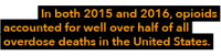 The statistics are stark: In 2016, 115 people a day died of an opioid overdose in the U.S. That’s more than 40,000 people over the course of the year. These are alarming figures on their own, and even more horrifying when you consider that they represent a 30 percent increase in the number of deaths compared to 12 months prior. This is an epidemic that does not discriminate. The number of overdoses rose across age, race, and geography; they were present in rural, suburban, and urban areas. And while death rates from all kinds of drug use have gone up in the past few years, the numbers make it clear that opioids are especially lethal. In both 2015 and 2016, they accounted for well over half of all overdose deaths in the United States.