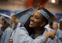 In the culmination of commencement exercises, graduating students were recognized individually, cheered on by family, friends, professors, and other well-wishers. Departmental chairs “hooded” 21 doctoral students; more than 600 Master’s students were presented with a scroll printed with the United Nations Declaration of Human Rights. Students officially graduate in a University-wide ceremony today.