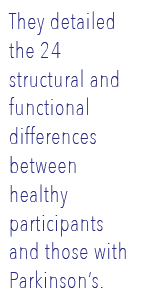 In a 2016 study published in Frontiers in Neuroscience, Bowman and his coauthors detailed the 24 structural and functional differences between the healthy participants and those with early stage Parkinson’s. Talk about a needle in a haystack: Those 24 relevant structural and functional differences represented just 0.051 percent of the original data.