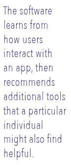 Those personalized recommendations are designed to maximize user engagement, says Cheung, because increased user engagement with the effective mental health practices IntelliCare supports has been shown to correlate with improvements among people who suffer from anxiety and depression. Cheung has already written a preliminary algorithm. Compared with the original software’s results, his version boosted the number of meaningful user interactions by ten sessions per week. “Eventually,” he says, “the goal is to have the recommendations informed by user data in such a way that they update in real time. So the recommendations will get better and better.”