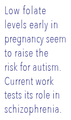 More recently, analyses of the Autism Birth Cohort (ABC) Study—a trove of data compiled from thousands of Norwegian children with autism and their mothers—homed in on folate’s role in the prenatal pathways of cognitive development. A micronutrient found in dark green leafy vegetables, folate protects against neural tube defects during the first trimester—precisely the diagnoses the elder Susser and Stein found in their Dutch Hunger Winter analyses. In the Norwegian study, children of women who had insufficient pre- and early-pregnancy folate levels had a greater chance of being diagnosed with autism. Ezra Susser wants to know whether a mother’s folate levels might also be related to her children’s chances of developing schizophrenia. The answer won’t come quickly. The ABC babies are still decades away from developing symptoms, which rarely manifest in childhood.