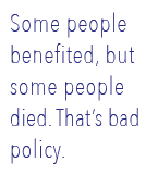 The investigators uncovered the deadly side effect by zeroing in on the post-welfare circumstances of women who were unable to join the workforce due to disability or family-care responsibilities. Compared with those who found paid work when their benefits ran out, the women who couldn’t work were at greater risk of homelessness and more likely to die sooner. “Failing to target programs to specific groups can be harmful,” says Muennig. “In the case of welfare reform, the ‘average’ person benefited, but some people died because the program didn’t consider that anyone would be harmed. That’s bad policy.”