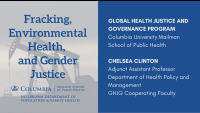 On October 6, 2020, the Global Health Justice and Governance Program (GHJG) and Chelsea Clinton, Adjunct Assistant Professor within the Department of Health Policy and Management and GHJG Cooperating Faculty, hosted a virtual forum for scientists, advocates, and policy experts to share findings and strategies to address the public health implications of fracking.