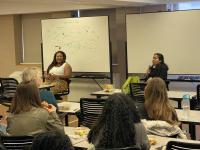 On August 28th Department Chair Kathy Sikkema joined other SMS faculty and staff in welcoming our first year masters students to Mailman. Our new students listened to presentations from faculty members including Assoc. Prof. Christian Gloria, Assis. Prof. Merlin Chowankyun, Professor David Rosner, Assoc. Prof. Kavita Sivaramakrishnan, Assis. Prof. Yuan Zhang, and staff member Charmagne Jones.