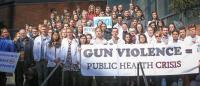 Following the discussion, a group of Mailman students walked to the steps of the Hammer Health Sciences Building where they joined with their counterparts at Physicians & Surgeons, Nursing, and Dental to advocate for preventing future shootings. A large banner made their intentions clear: “Gun Violence = Public Health Crisis.”