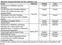 The MOSAIC programmatic model includes five domains that consist of professional development, faculty mentorship, navigating institutions, incident management, and guest speakers (including faculty, staff, and alumni).