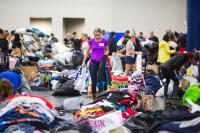 Six days after Hurricane Harvey made landfall, over 10,000 people took shelter at the George Brown Convention Center, which is double its capacity. Emergency shelters are not constructed to provide a sense of privacy. Overcrowding limits access to toilet use and prevents girls and women from discreetly managing accidental stains on cots or clothing as a result of their menstrual cycles. Quality of toilet facilities, such as the accessibility of trash cans in stalls, may also have negative implications on toilet functionality, as girls and women may flush used MHM items down the toilet, contributing to clogging.
