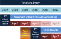 The Center launched its first study in 2001 in Tongliang, a city where a centrally located coal-fired power plant was the major source of air pollution. In 2004, local officials shut down the plant, creating an ideal natural experiment in which the effects of energy-related air pollution on children’s health could be studied before and after the plant’s closure. The study tracked three distinct cohorts of pregnant women and their children: one that was enrolled while the plant was still operating, and two that were enrolled after local authorities shut the facility down.