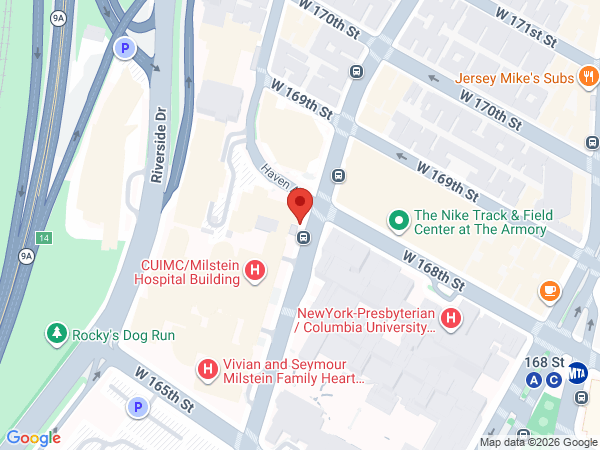 • Our classrooms are located in the Irving Institute Educational Center on the 10th floor of the Presbyterian Hospital Building (622 W 168th Street). Take the Presbyterian Elevators to the 10th Floor. When you exit the elevators, you will see double doors on one side of the elevator bank and a single doorway on the other side. Go through the single doorway. The educational center classrooms will be on your right and the administrative offices on your left. For a map of CUIMC, please click here.