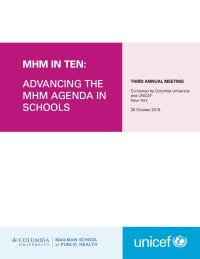In 2014, UNICEF and Columbia University organized the first MHM in Ten meeting, with the objective of mapping out a ten-year agenda (2014-2024) for MHM in schools. The meeting brought together a wide range of actors, including academics, donors, non-governmental organizations (NGOs), United Nations agencies, the private sector, advocacy organizations and national governments –from a variety of sectors, including water, sanitation and hygiene (WASH), education, gender, sexual and reproductive health (SRH) and adolescence. Participants shared a common vision, that in 2024, girls around the world are knowledgable about and comfortable with their menstruation, and are able to manage their menses in school in a comfortable, safe and dignified way.